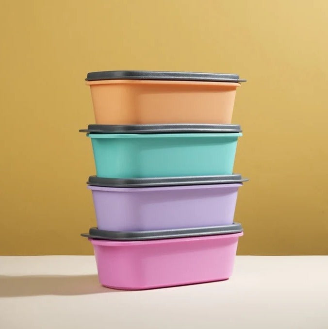 Tupperware’s MM Oval #1 (Set of 4) in its stunning new color. Designed for modern kitchens, this versatile dry storage container is perfect for organizing pulses, lentils, snacks, and namkeens while keeping them fresh and crisp. Its ergonomic oval shape and modular design optimize shelf space, while the transparent windows let you quickly identify the contents. Whether it’s for better functionality or aesthetic appeal, this container is your ultimate kitchen solution.